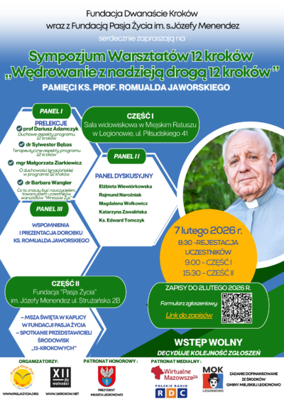 Drodzy Przyjaciele, z radością zapraszamy Was na Sympozjum Warsztatów 12 Kroków „Wędrowanie z nadzieją drogą 12 kroków ” w dniu 7 lutego 2026 roku w ... -