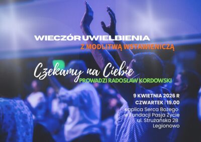 Wieczór uwielbienia i modlitwy w Fundacji „Pasja Życia”Czekamy na Ciebie! To będzie czas wspólnej modlitwy, uwielbienia i spotkania z Bogiem. Przyjdź, aby zatrzymać się, ... -